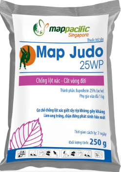 1. Map Judo 25WP: Là thuốc điều hòa sinh trưởng côn trùng nên có thể ngăn cản rầy, rệp lột xác và cắt đứt vòng đời, đặc biệt, kiểm soát hiệu quả cao đối với rầy nâu và rệp sáp.